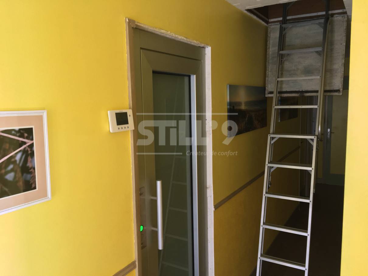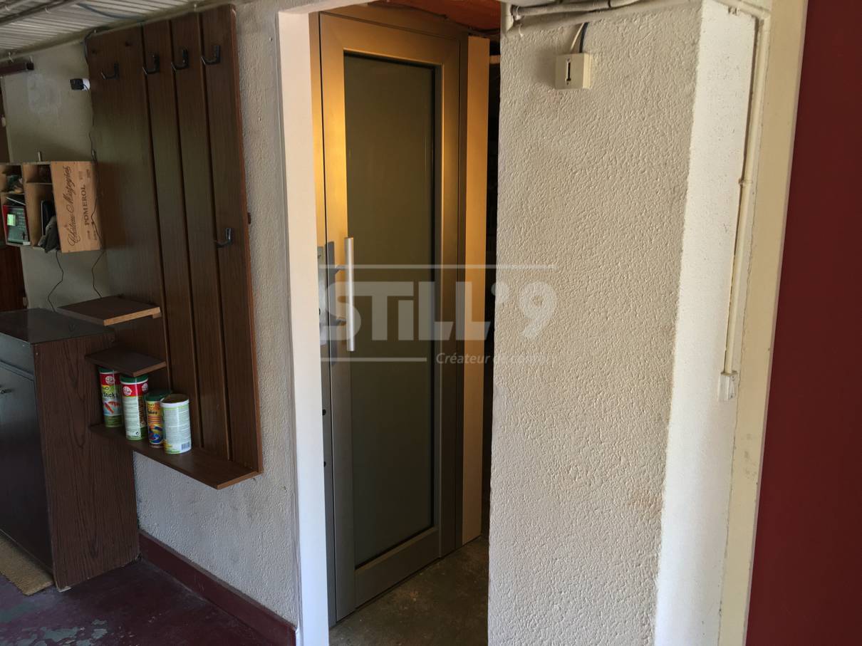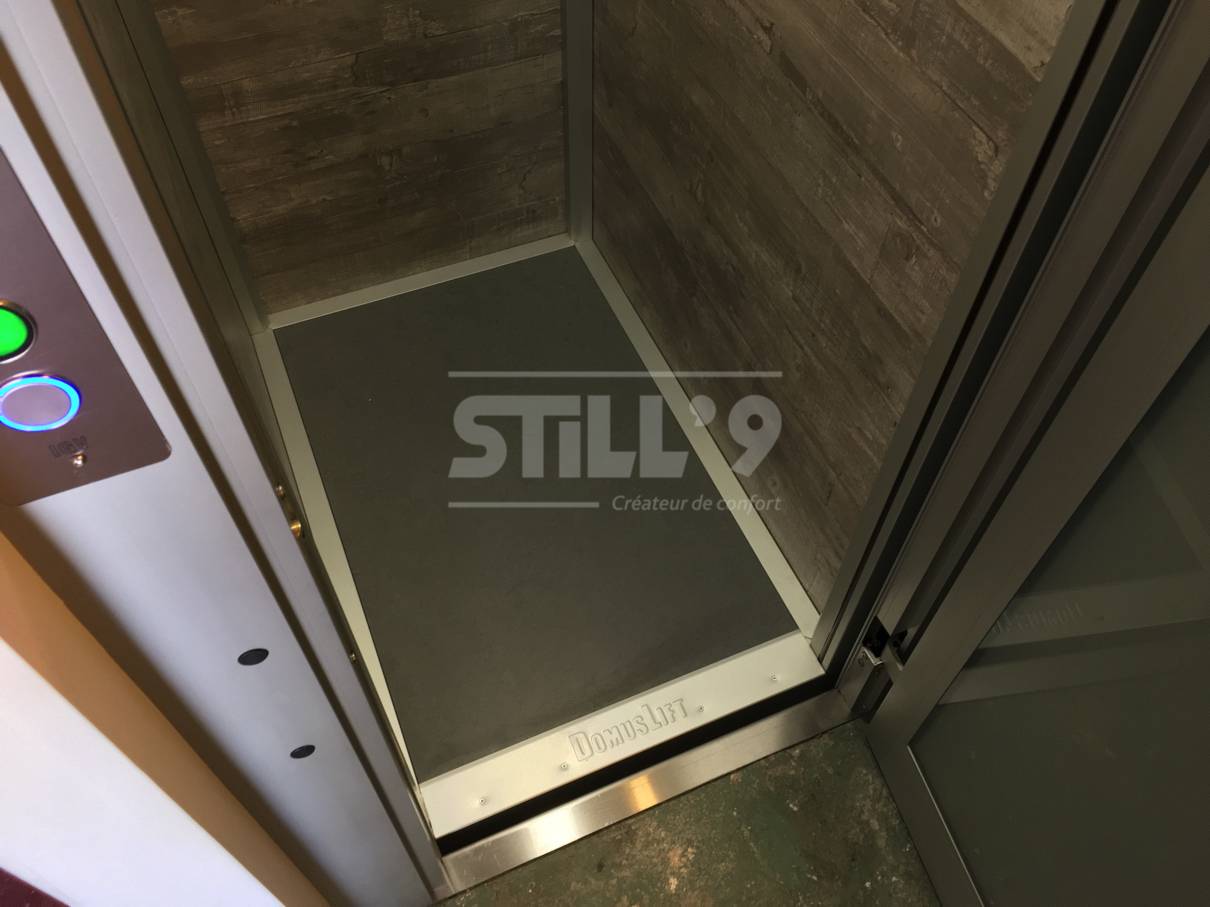 Ce petit ascenseur privatif intérieur peut transporter jusqu'à trois personnes. Il a été conçu dans une gaine maçonnée totalement fermée en béton autour de Brétigny sur Orge 91. Ce client voulait gagner en autonomie, confort et sécurité. C'est chose faite avec cet ascenseur privatif.