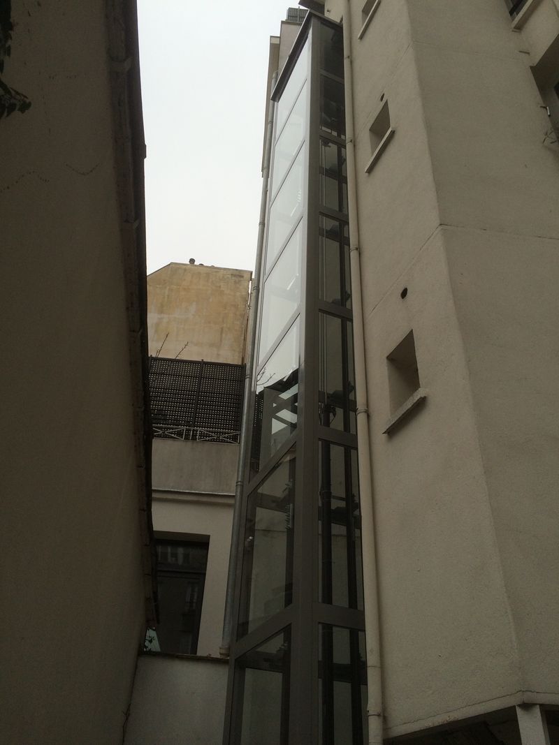 La société STILL9 a adapté un ascenseur pour appartement à Paris dans le 5ème arrondissement. Cet ascenseur extérieur a été réalisé dans une structure auto-portante en acier. La course d'élévation de cet ascenseur sur mesure s'élève à plus de 10 mètres.