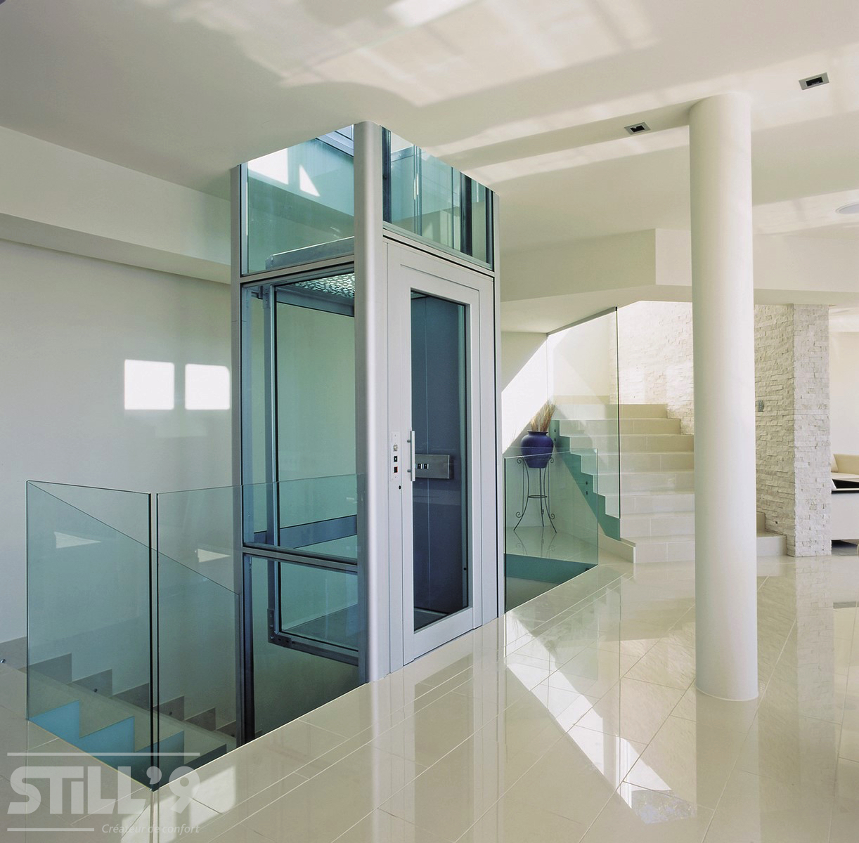 L'ascenseur en pylônes auto-portants, permet à la cabine de se déplacer dans une structure auto-portante en aluminium ou acier vernissable aux couleurs de votre choix, elle peut être habillée de panneaux de verre, ce qui laisse la visibilité vers l'extérieur.