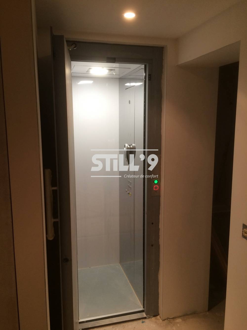 Le Domuslift XS, peut-être installé dans des espaces réduits, tel qu'au milieu de votre cage d'escaliers ou bien dans un placard non utilisé limitant les travaux de maçonnerie.