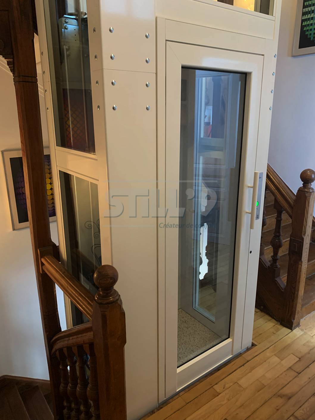 Après une étude de faisabilité sur place près d'Amiens 80 et quelques entretiens téléphoniques, nous avons pu lui proposer cette magnifique solution : notre plus petit modèle d'ascenseur élévateur intérieur, le modèle XS.