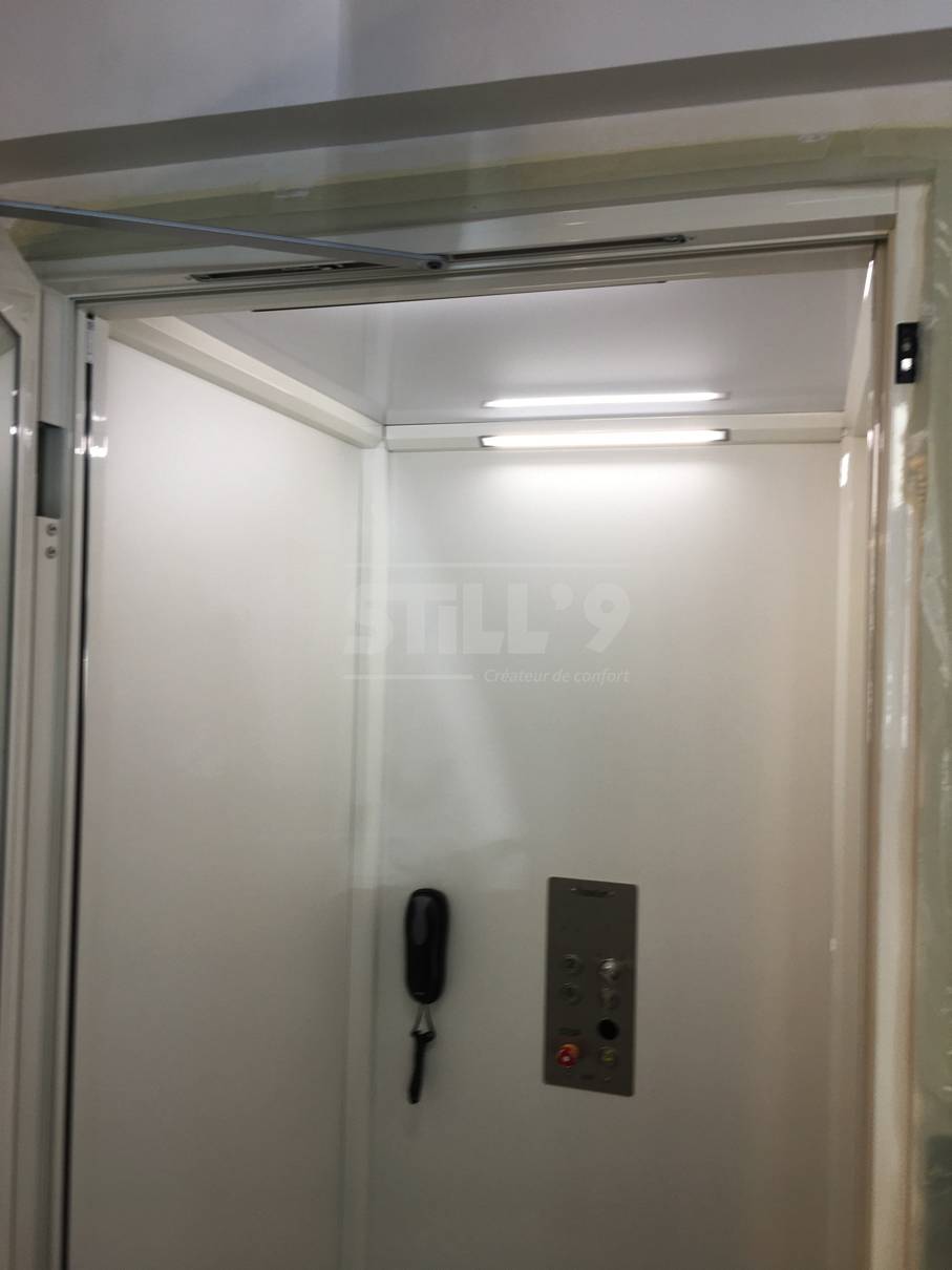 Les bâtiments sur Paris sont souvent configurer d'une certaine façon, que faire installer un élévateur privatif intérieur est parfois compliquée. Heureusement dans ce cas, nous avons réussi à s'accorder ensemble sur un produit compact mais avec de belles finitions.