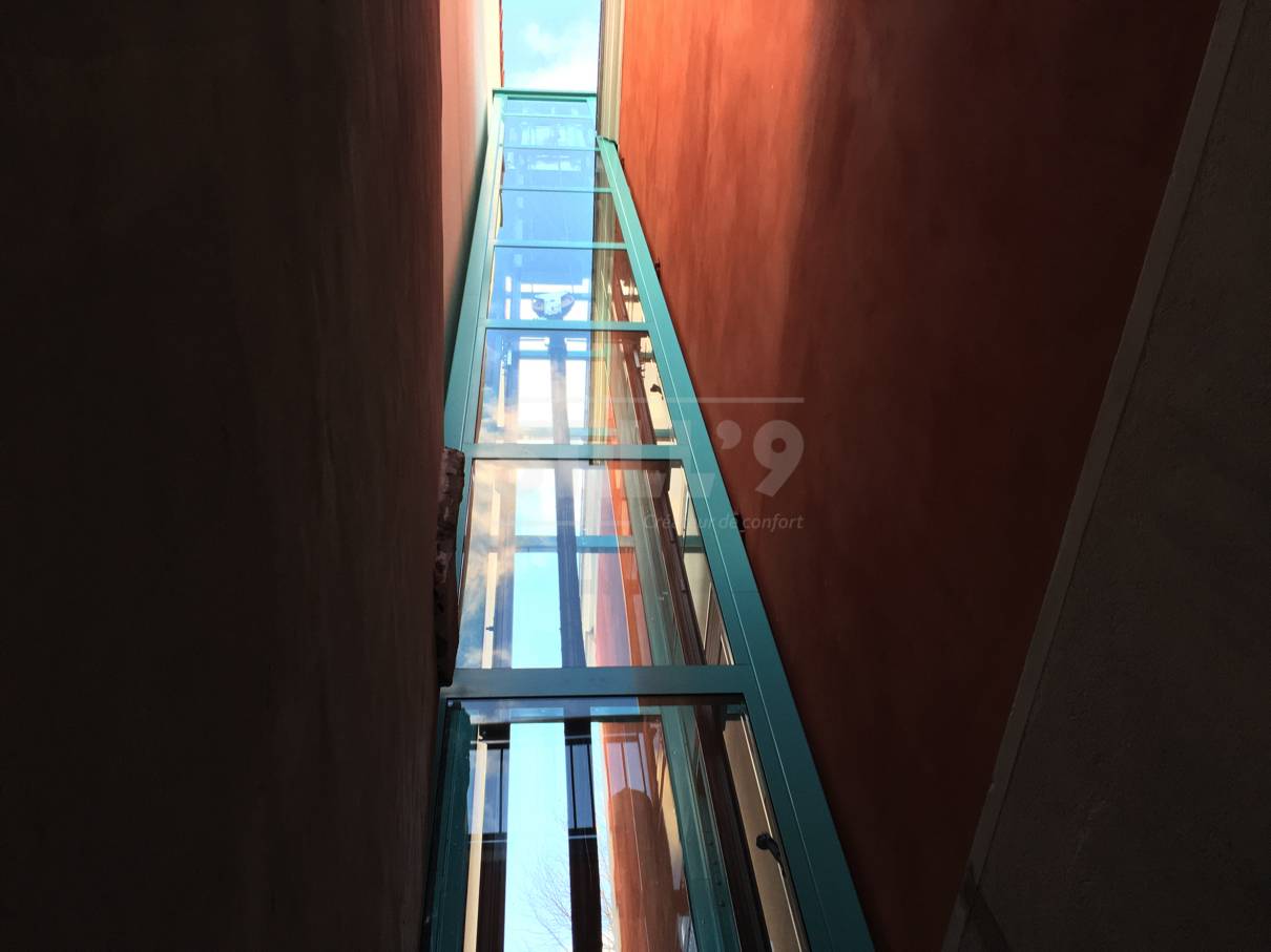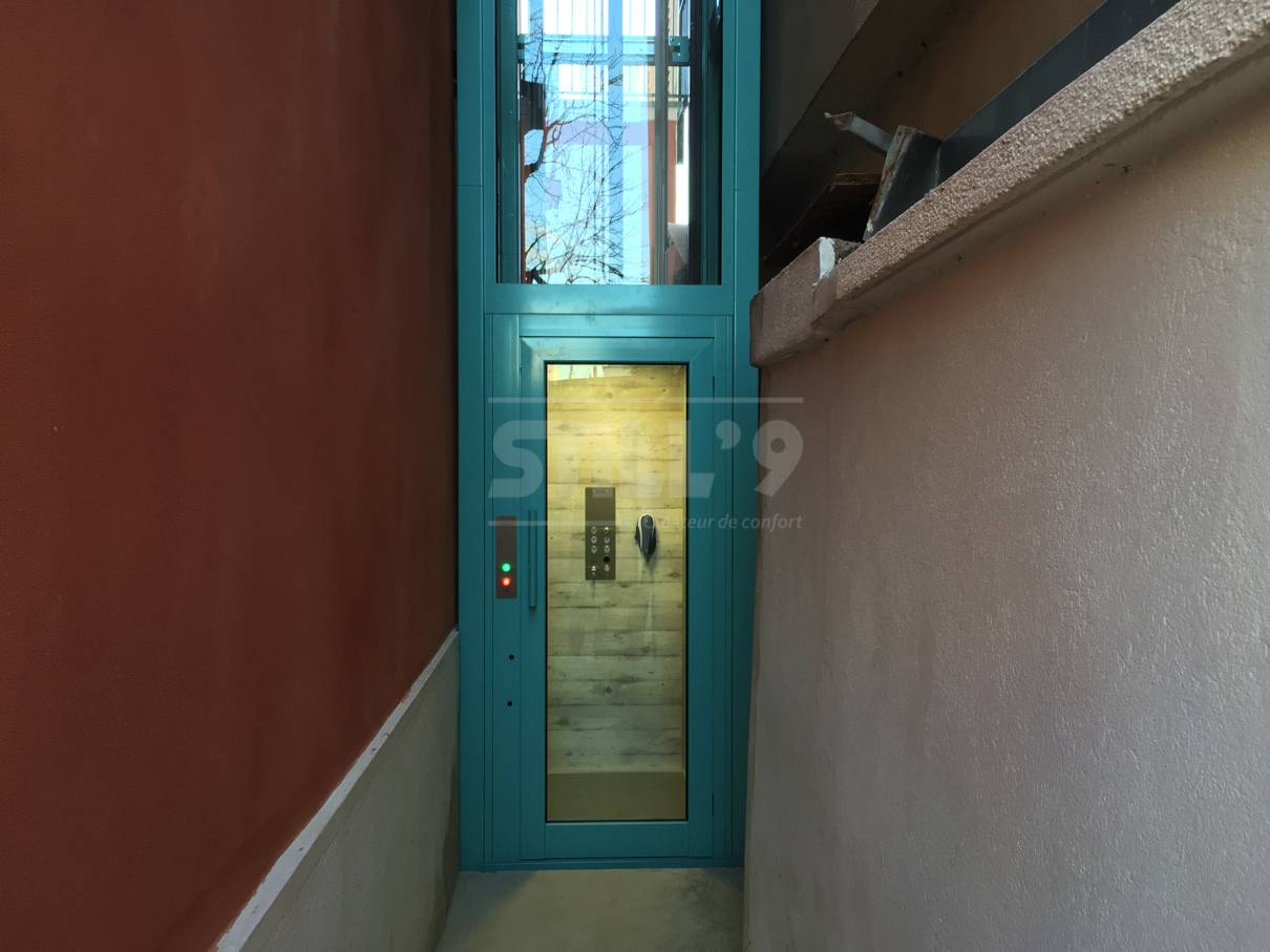 Nous avons implanter un élévateur entre deux bâtiments à Champigny sur Marne 94. Cet élévateur très coloré au RAL 6033 a été incorporé entre les deux bâtiments existants. Cela apporte de réels avantages aux habitants, et le bâtiments prend également de la valeur.