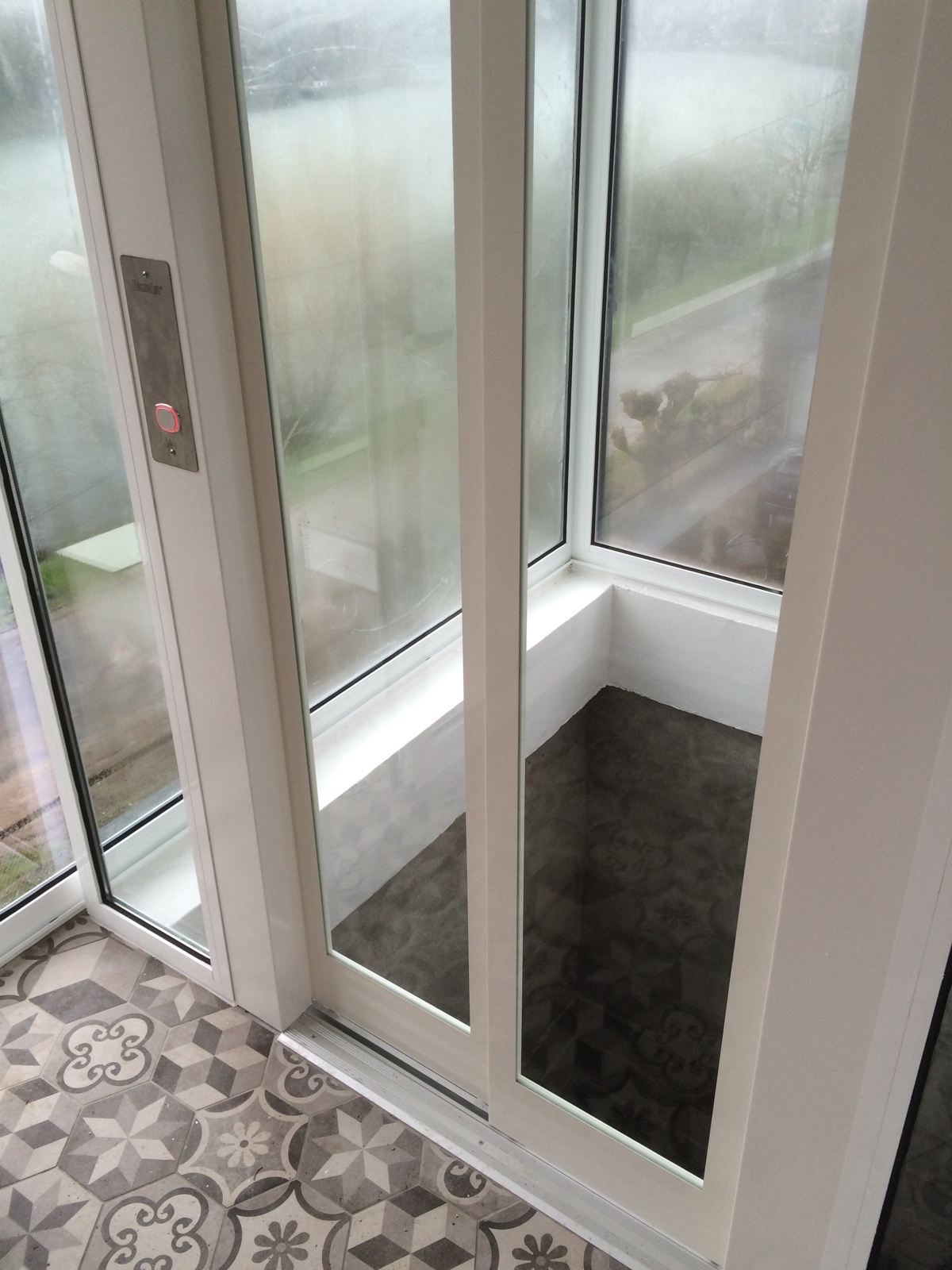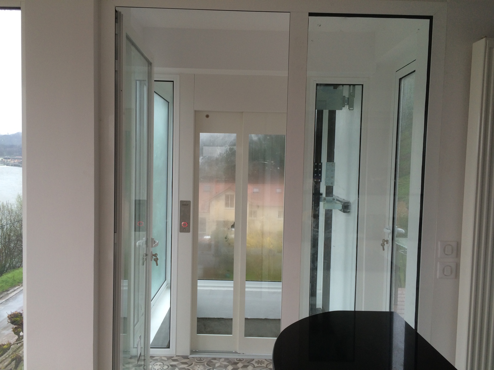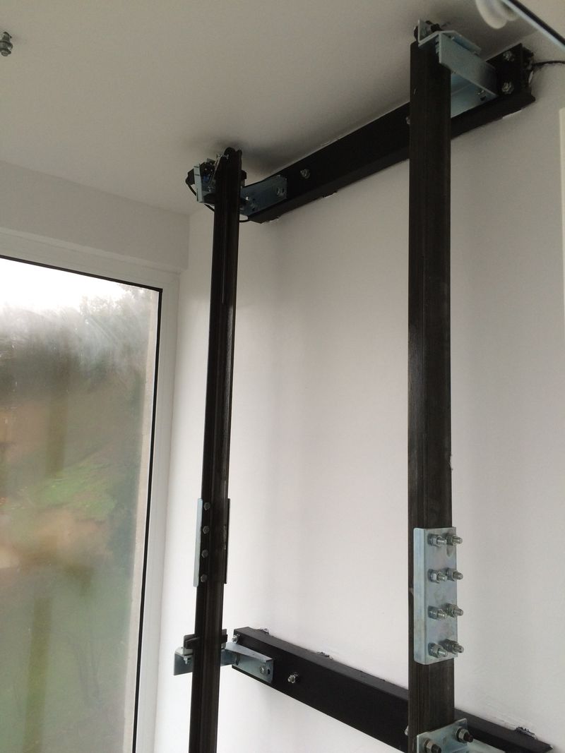 Ce type d'ascenseur individuel correspond au modèle XL (Extra-Large) de notre gamme Domuslift. Il dessert les deux niveaux du bâtiment. Cet élévateur privatif a été réalisé dans une gaine maçonnée en béton armé déjà existante. Les dimensions de la gaine sont de 1450 x 1800 mm (larg x prof).