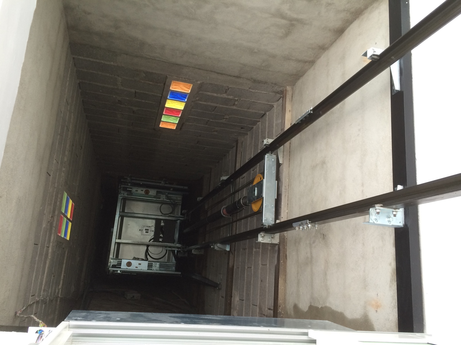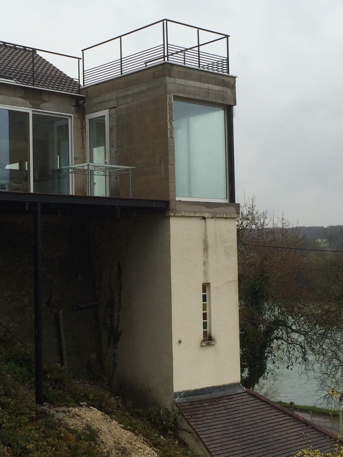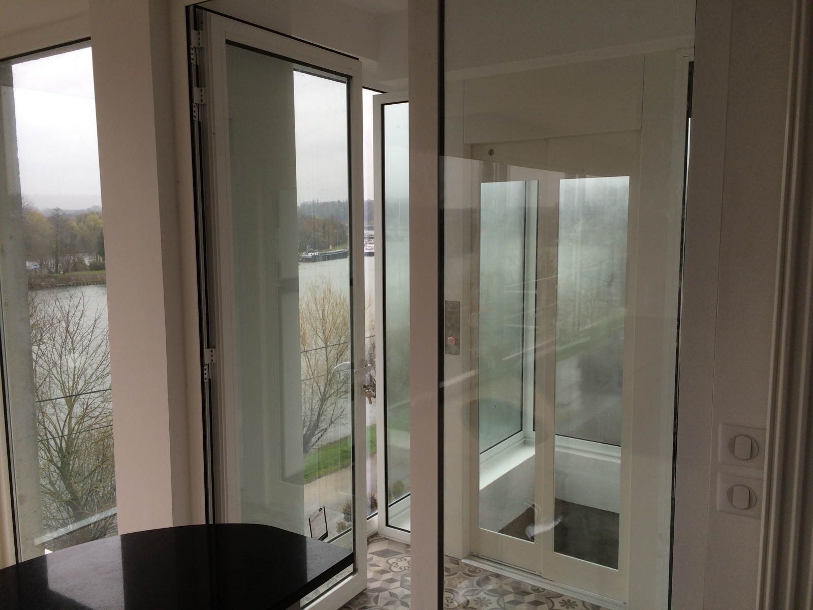 Ce type d'ascenseur individuel correspond au modèle XL (Extra-Large) de notre gamme Domuslift. Il dessert les deux niveaux du bâtiment. Cet élévateur privatif a été réalisé dans une gaine maçonnée en béton armé déjà existante. Les dimensions de la gaine sont de 1450 x 1800 mm (larg x prof).