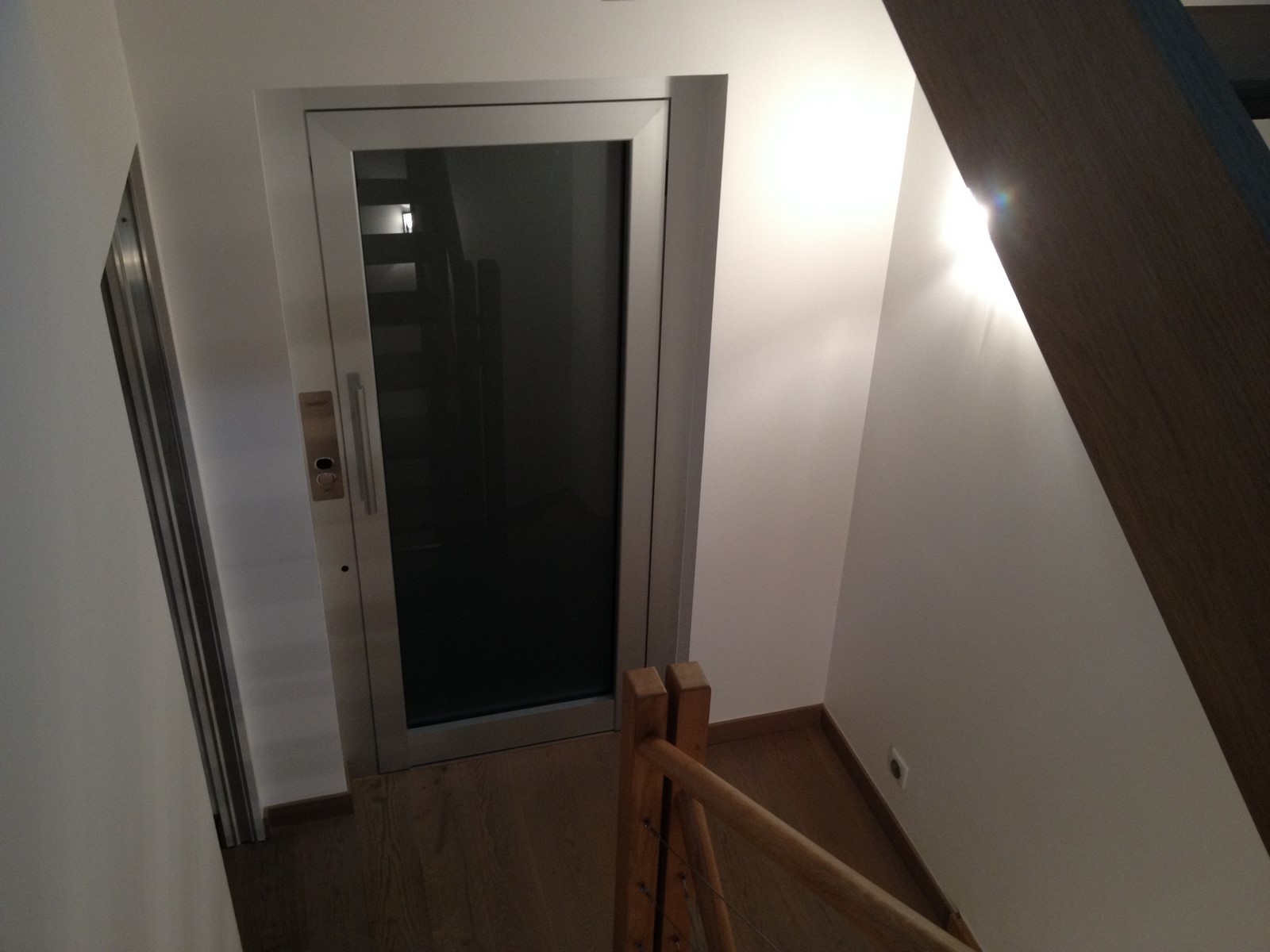 En effet notre cliente très soucieuse du détail, voulait un ascenseur discret, sobre et s'intégrant parfaitement à l'agencement et la décoration de son appartement. C'est pourquoi nous lui avons proposé le modèle Domuslift en gaine maçonnée avec une hauteur d'élévation de 5400 mm fabriqué entièrement sur mesure. Cet ascenseur privatif sur mesure dessert les trois niveaux de l'appartement.