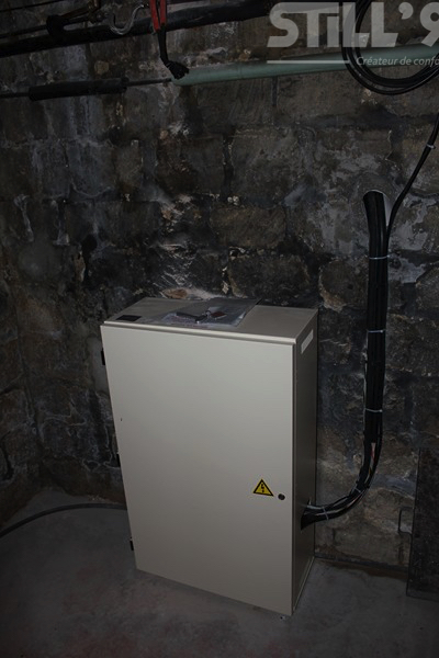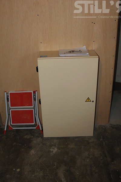 Le groupe de commande a des dimensions réduites 600 mm de largueur par 1250 mm de hauteur, sur 280 mm de profondeur et peut être installé dans une position discrète, dans la cave ou le garage, jusqu'à 7 mètres de nos petits ascenseurs de maison.