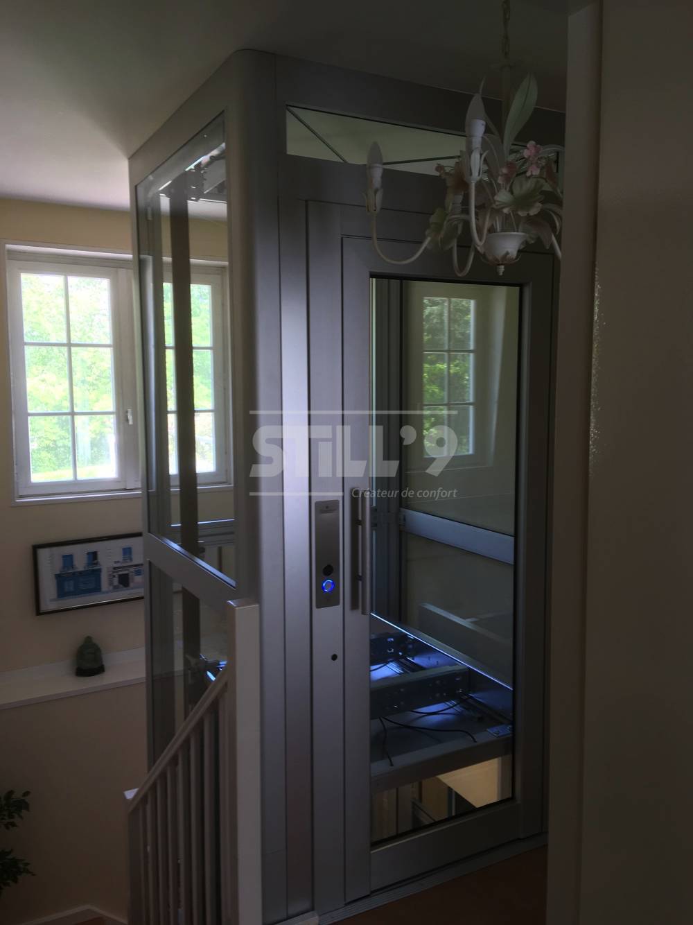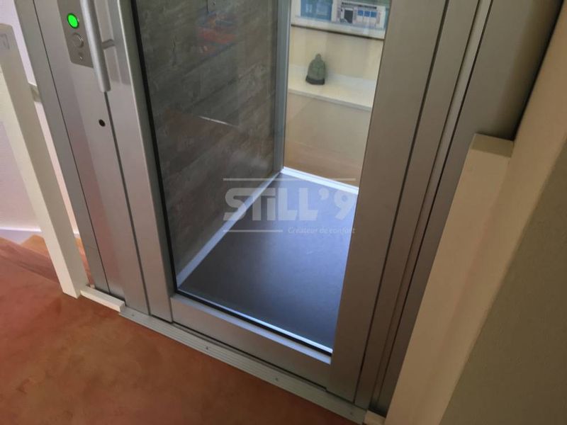 L'ascenseur privatif installé dans ce pavillon aux alentours de Orsay 91, dessert les deux niveaux de l'habitation. Il est équipé de portes battantes et d'une structure autoportantes vitrée. Les dimensions intérieures de cabine sont de 850 x 1000 mm.